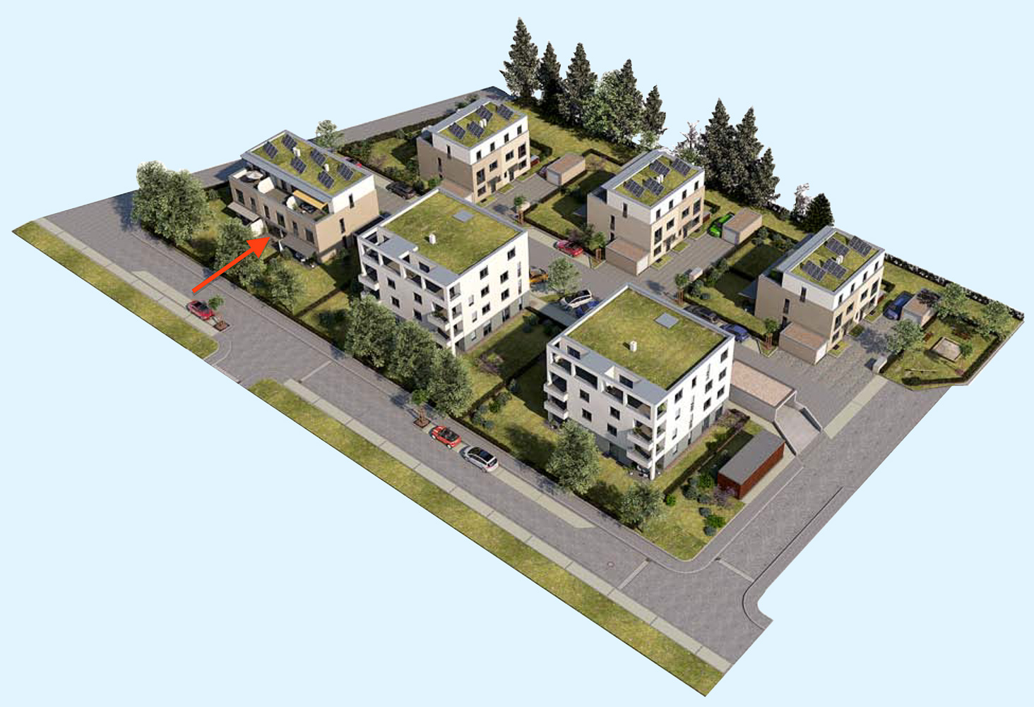 Das Haus ist nach Süden/Westen ausgerichtet, hat drei Wohngeschösse, Keller, Garage, Pkw-Stellplatz, großzügige Dachterrasse, Garten mit großem Sandkasten und Gartenhaus für Fahrräder & Gartenzeug.